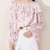 Loose Pink Ruffled Print Chiffon Shirt Flare Sleeve