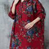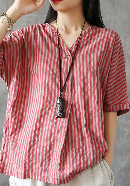 Orange Cotton Shirt Tops V Neck Embroidered Half Sleeve