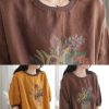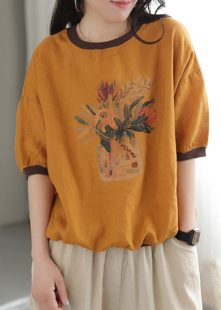 Vintage Yellow Oversized Patchwork Print Linen Tank Tops Short Sleeve